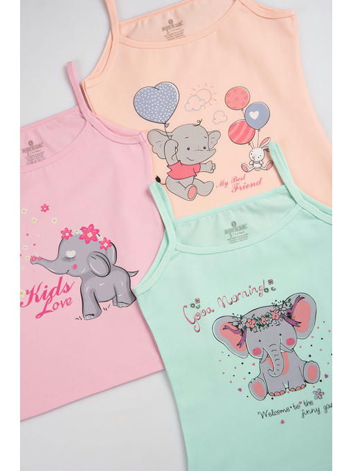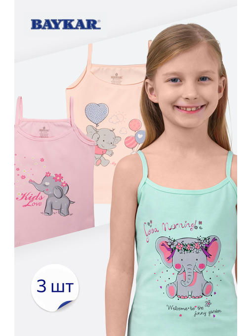 Базовые детские майки полуприталенного кроя на тонких бретельках на каждый день в детский сад, школу. В набор детских маек входят майки с принтом Слоник. Маечки детские удобно надевать под любую одежду, аккуратные гладкие швы не натирают нежную детскую кожу. Набор всесезонных детских маек для девочек пригодится зимой как нижний слой, и летом на прогулку и для дома. Майки для девочки – база детского гардероба.
