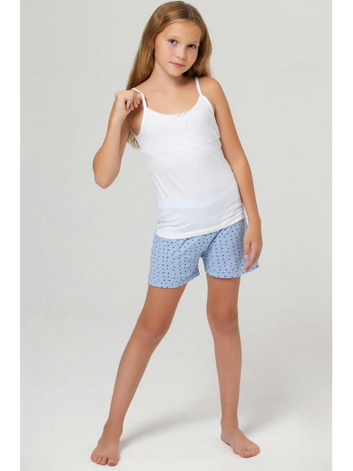 Летняя однотонная маечка выполнена в белом цвете и украшена нежной кружевной вставкой и атласным бантиком в зоне декольте. Майка топ с кружевом идеальна на каждый день: подойдет для детского сада и школы. Однотонная нательная майка без рисунка идеально носится с любой одеждой, аккуратные гладкие швы нижнего белья для девочки не натирают нежную детскую кожу. Пригодится зимой как нижний слой под джемпер или рубашку или как нательное белье дома. Турецкое качество майки гарантирует ее прочность.