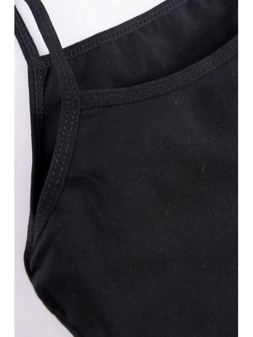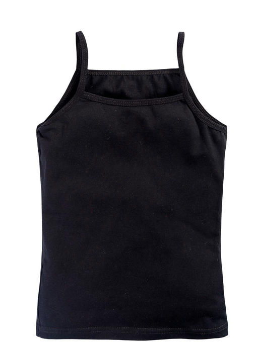 Бельевая майка на узких бретелях для девочек и девочек-подростков выполнена из натурального гипоаллергенного хлопка. Благодаря эластану в составе белье эластичное, при этом не просвечивает – это отличный выбор для каждой девочки, которая хочет чувствовать себя комфортно в любой ситуации. Однотонный топ представлен в базовом черном цвете.