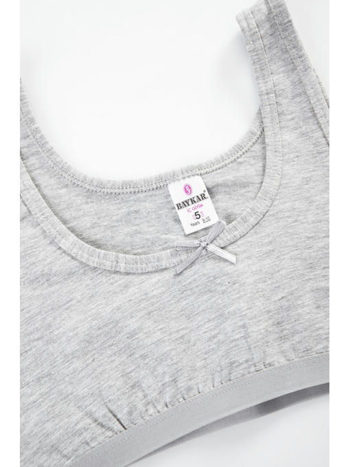Хлопковый топ майка идеален для нежной детской кожи. Топ светло-серого цвета сшит из качественного турецкого трикотажа, который подойдет даже для самой чувствительной кожи. Все швы детского бюстгальтера гладкие и не будут беспокоить ребенка во время активных занятий, в проймах топик детский для девочек с мягкими эластичными бейками. Майка топ сохранит первоначальные свойства даже после многочисленных стирок.