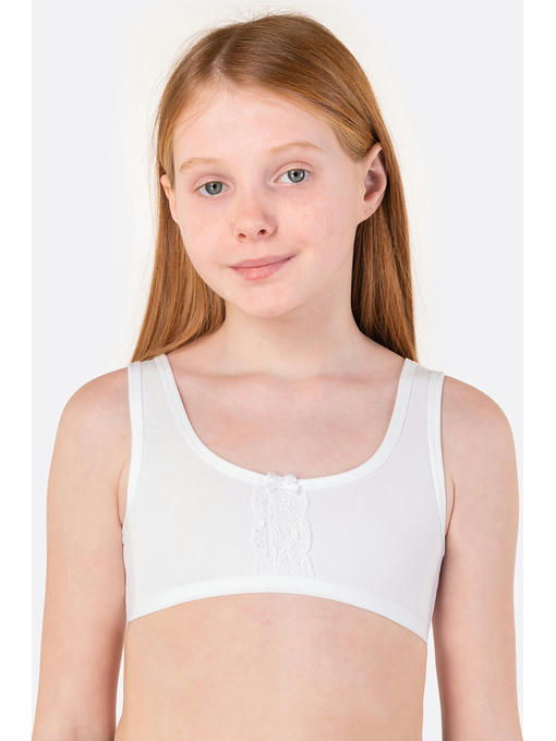 Короткая майка-топ на бретелях – удобная вещь в гардеробе девочки. Топы для подростков не стесняют движений, девочке будет комфортно в нем в течение всего дня. Лифчик для девочки не выделяется под одеждой. Хлопковый топ майка идеален для нежной детской кожи. Топ на широких бретелях сшит из качественного турецкого трикотажа, который подойдет даже для самой чувствительной кожи. Детский бюстгальтер с гладкими швами, которые не будут беспокоить подростка во время активных занятий. Топик детский для девочек с мягкими эластичными бейками в проймах. Майка топ сохранит первоначальные свойства даже после многочисленных стирок.