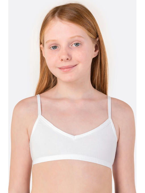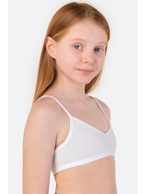 Лифчик для девочки почти неощутимый и невидимый под одеждой. Хлопковый топ майка идеален для нежной детской кожи. Белый топ сшит из нежного турецкого трикотажа, которое подойдет даже для самой чувствительной кожи.