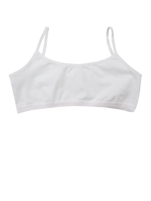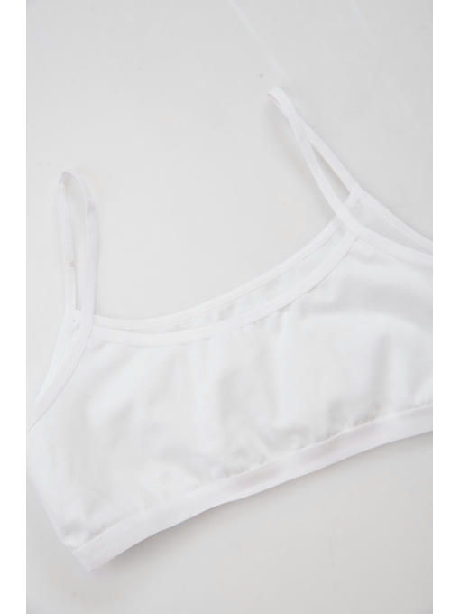 Белый топик без чашек для девочек подростков, на тонких бретелях, с эластичной резинкой по низу. Бюстик для девочек подростков выполнен из хлопкового материала, мягкого, эластичного и гипоаллергенного. За счет небольшого количества синтетических нитей модель комфортно облегает фигуру и не стесняет движений.
