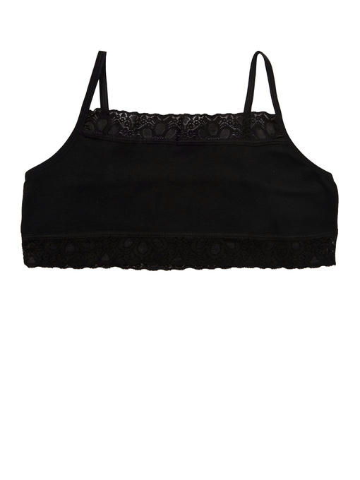 Бельевой топ для девочек-подростков на тонких бретелях выполнен из гипоаллергенного 100% хлопка. Дышащая и приятная к телу ткань подарит комфорт в летний период. Однотонный классический топик представлен в базовом черном цвете. Детский лиф станет любимым в гардеробе девочки благодаря украшению в виде нежного кружева.
