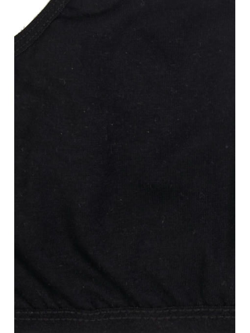 Однотонный черный топик без чашек для девочек и девочек-подростков, на тонких бретелях, с эластичной резинкой по низу. Бюстик для девочек подростков выполнен из хлопкового материала, мягкого, эластичного и гипоаллергенного. За счет небольшого количества синтетических нитей модель комфортно облегает фигуру и не стесняет движений.