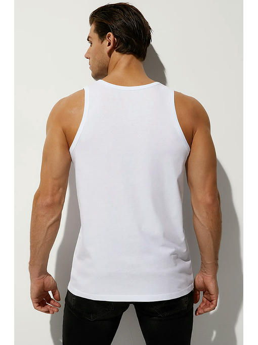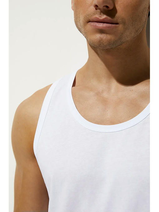 Хлопковая мужская майка с овальным вырезом и широкими бретелями, которая отлично подходит и на каждый день, и для занятий спортом. Модель представлена в самых популярных базовых оттенках