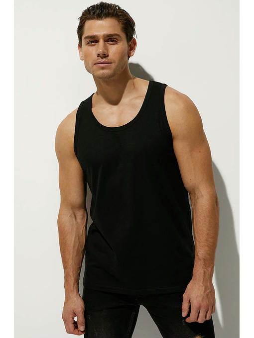 Хлопковая мужская майка с овальным вырезом и широкими бретелями, которая отлично подходит и на каждый день, и для занятий спортом. Модель представлена в самых популярных базовых оттенках