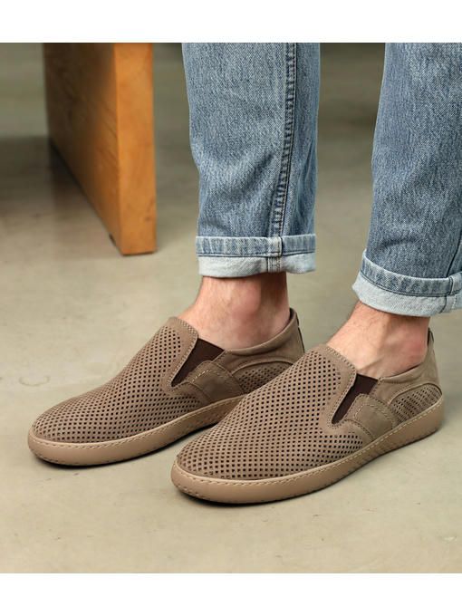 Практический вариант для повседневного гардероба – мужские мокасины. Универсальная окраска позволяет сочетать их с одеждой разных оттенков. Обувь изготовлена из нубука, покрыта отверстиями для перфорации, что гарантирует отличную воздухопроницаемость, комфорт в использовании и долговечность. Кожаная просиликоненная стелька придает удобства во время хождения. Легкость и отличное сцепление обеспечивает износостойкая прошитая подошва. Используйте кожаные мокасиины для создания привлекательных образов в casual-стиле, которые подчеркнут вашу индивидуальность.