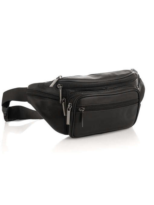 Размеры: 20*13*2,5 см. Количество основных отделений: 1. На лицевой стороне 4 прорезных кармана на молнии и 1 накладной карман. На тыльной стороне прорезной карман. Сумка имеет поясной ремень регулируемой длины (максимально – 90 см). Аксессуар можно носить на поясе. Подкладка изготовлена из ткани. Материал: кожа. Цвет: черный. Цвет фурнитуры: серебро. Модель закрывается молнией. Документы формата А4 не помещаются в сумку. Страна происхождения торговой марки BUFFALO BAGS, а также страна-производитель – Китай.