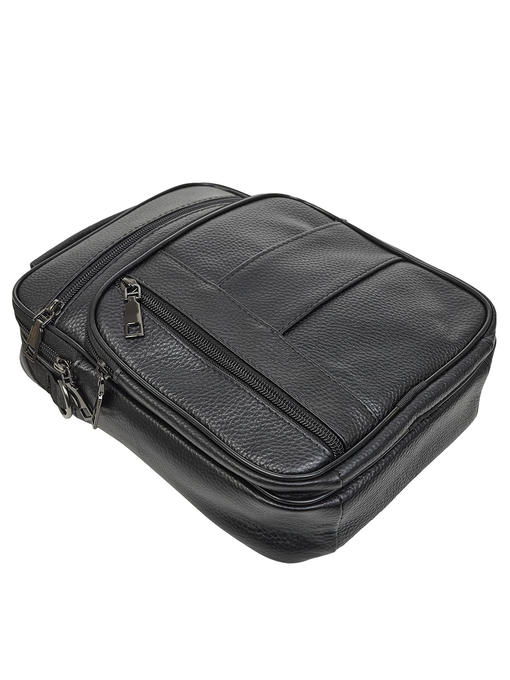 Размеры (X*Y*Z): 21*24,5*7 см. Цвет: черный. Цвет фурнитуры: чёрное серебро. Материал: кожа. Материал подкладки: ткань. Количество основных отделений: 1. Внутри есть 1 прорезной карман на молнии. На лицевой стороне дополнительный накладной карман и 3 прорезных кармана (2 кармана на молнии и 1 открытый карман). На тыльной стороне 2 прорезных кармана на молнии. Модель имеет съемный плечевой ремень регулируемой длины (максимально – 164 см) и несъемную ручку. Модель пригодна для ношения в руке, на плече и через плечо. Закрывается сумка с помощью молнии. Документы формата А4 не помещаются в аксессуар. Страна происхождения торговой марки BUFFALO BAGS, а также страна-производитель – Китай.
