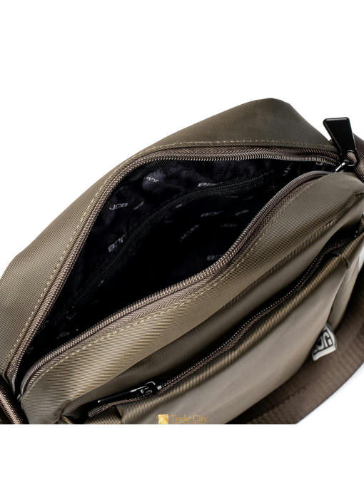 Цвет этой тканевой спортивной сумки привлекает внимание – он неизбитый, смотрится оригинально. Тёмно-зелёный аксессуар оформлен просто, в роли декора использована контрастная эмблема с крупными буквами – названием бренда JCB. Английская торговая марка предлагает удобный вариант на каждый день – спортивно-повседневную сумку традиционной городской формы. Она напоминает борсетки или сумки-планшеты, которые тоже имеют правильные параметры, небольшую толщину, носятся на плечевом ремне. Модель оснащена сподручными карманами, закрывается молнией. Ремень из тканевой ленты надёжен и удобен, качество проработки швов, внутренней отделки заслуживает доверия
