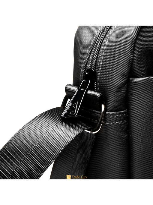Стильные спортивные нотки добавит в мужской образ эта сумка торговой марки JCB. Аксессуар чёрного цвета изготовлен из плотной, хорошо держащей форму ткани, отделан внутри тканевой подкладкой. Вертикально-прямоугольная форма имеет одинаковую ширину по всей высоте. Лицевая сторона оформлена без отделочных строчек, поэтому сгибы деталей выглядят мягко. Крупная контрастная эмблема бренда вшита в шов с лица. Крепкий широкий ремень из специальной ленты надёжно крепится по бокам и регулируется фурнитурой из стали. Система карманов позволяет распределить равномерно вещи в небольшом объёме. Основное отделение – вместительное. Модель привлекает высоким качеством и лаконичным дизайном