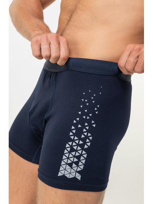 Классические трусы шорты украшены абстрактным рисунком на бедре. Мягкая резинка по талии, удобная анатомическая ластовица, застежка на пуговицу обеспечивают идеальную посадку, благодаря чему нижнее белье будет комфортно ощущаться на теле и во время активных занятий, и во время отдыха.