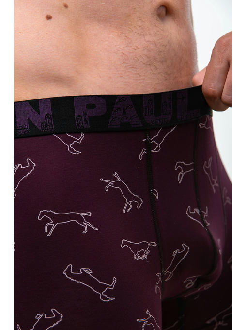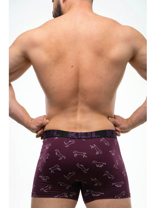 Мужские трусы боксеры выполнены из мягкого хлопкового трикотажа, плотного и приятного к телу. Трусы с рисунком лошади, широкий эластичный пояс декорирован брендовой надписью.