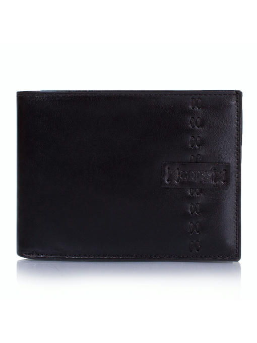 При первом взгляде на эту модель мужского портмоне невольно ловишь себя на мысли о том, что это действительно вещь с мужским характером. Только посмотрите на то, как оформлена лицевая сторона кошелька. Достаточно брутальные нашивки, теснение и грубоватая прошивка наделяют внешний облик аксессуара особым шармом. Внутри кошелек устроен удобно и правильно. Есть куда положить не только купюры, но и более мелкие вещи, такие, как визитные карточки, дисконты и кредитки. Банкноту мять не придется. Складывать ее вдвое совсем не нужно.