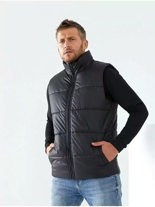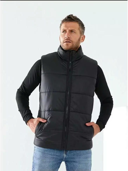 Мужской жилет Ткань – наполнитель 200 халофайбер, верх-100% нейлон. Змейка трактор, стойка, карманы – листочкиЦвет черный