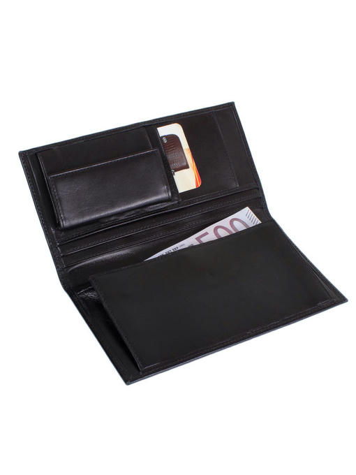 Кожгалантерейные аксессуары турецкой фирмы DESISAN при разнообразии конструкций, фактур, размеров, внешнего вида узнаваемы всегда, и не только благодаря фирменным эмблемам, украшающим обычно изделия. Эти вещи словно обладают особой аурой, от которой веет надежностью и выдержанным стилем, элегантностью и оригинальностью даже при обычных формах. Так и эта модель мужского кошелька из гладкой матовой натуральной кожи непроницаемо черного цвета увлекает сразу и дает почувствовать ее неординарность. А ведь все построено здесь на обычном прямоугольном фасоне и проверенной классике, но вот внутренне устройство дает владельцу чувство свободы и независимости от стереотипов