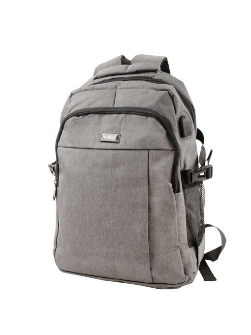 На лицевой и тыльной сторонах рюкзака есть по одному прорезному карману на молнии. Плечевые лямки имеют плотную подкладку из поропласта, тыльная сторона выполнена из сетчатого материала 3D airmesh, который не препятствует свободной циркуляции воздуха. Длину лямок можно регулировать с помощью пластиковых пряжек. Спинка рюкзака уплотнена прослойкой из пеноматериала и обтянута сеткой 3D airmesh для свободной циркуляции воздуха. Рюкзак имеет боковые лямки для регулировки объема. Рюкзак имеет пояс для крепления к чемодану. или повесить на крючок или вешалку, а также удобную мягкую ручку. Есть боковой выход для USB-кабеля. USB-кабель идет в комплекте с рюкзаком. Рюкзак закрывается с помощью молнии.
