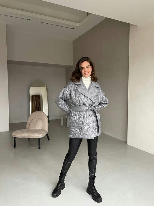 Стеганая ромбами куртка Норд изготовлена из качественной плащевой ткани силуэта перевернутого треугольника в стиле Оверсайз, длиной до линии середины бедра. Стеганое пальто двубортное и застегивается на петли и пуговицы. В данной модели английский воротник. По краю борта и воротника имеется кант в тон куртки. В данной модели спущенное плечо, рукава одно шовные. Низ рукавов можно отворачивать. На полочке расположены наклонные косые листочки с надстрочными концами. По боковому шву имеются разрезы. В стеганом пальто присутствуют шлевки и съёмный пояс, из основной ткани. Даная куртка подойдет для прогулок, работы, посещения различно рода мероприятий. Универсальная вещь для стильных городских образов модного сезона.