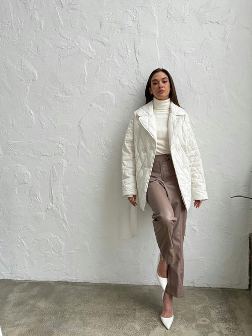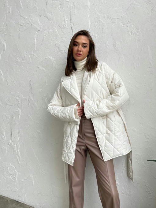 Стеганая ромбами куртка Норд изготовлена из качественной плащевой ткани силуэта перевернутого треугольника в стиле Оверсайз, длиной до линии середины бедра. Стеганое пальто двубортное и застегивается на петли и пуговицы. В данной модели английский воротник. По краю борта и воротника имеется кант в тон куртки. В данной модели спущенное плечо, рукава одно шовные. Низ рукавов можно отворачивать. На полочке расположены наклонные косые листочки с надстрочными концами. По боковому шву имеются разрезы. В стеганом пальто присутствуют шлевки и съёмный пояс, из основной ткани. Даная куртка подойдет для прогулок, работы, посещения различно рода мероприятий.