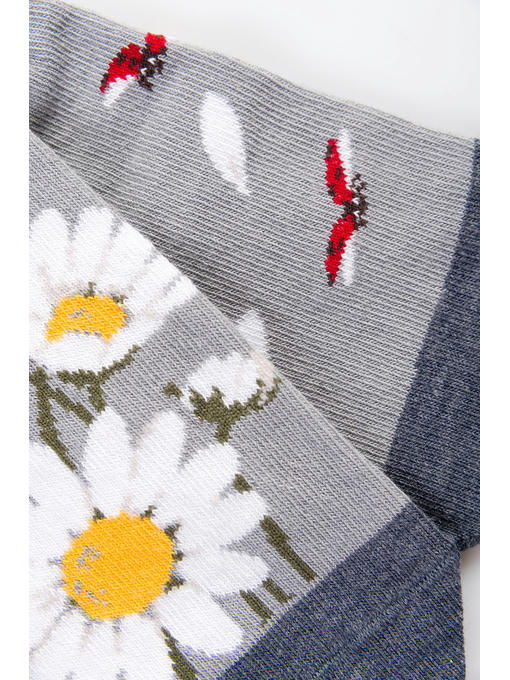 Необычные носочки для девочки из фешн коллекции, декорированы разными рисунками: один с ромашками, второй – с божьими коровками. Мягкие и нежные, выполнены из пряжи с высоким содержанием хлопка. Натуральный хлопок позволяет коже дышать, безопасные синтетические волокна защищают от деформации и увеличивают срок службы носков.