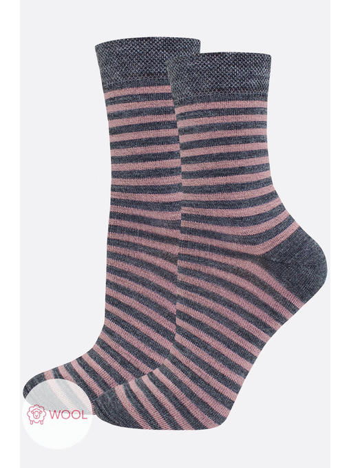 Теплые термо носки с содержанием шерсти для девочек. Гладкие и тонкие, подойдут под любую обувь. Носки на каждый день украшены классическим рисунком полосы. Идеальный вариант в прохладную и холодную погоду.