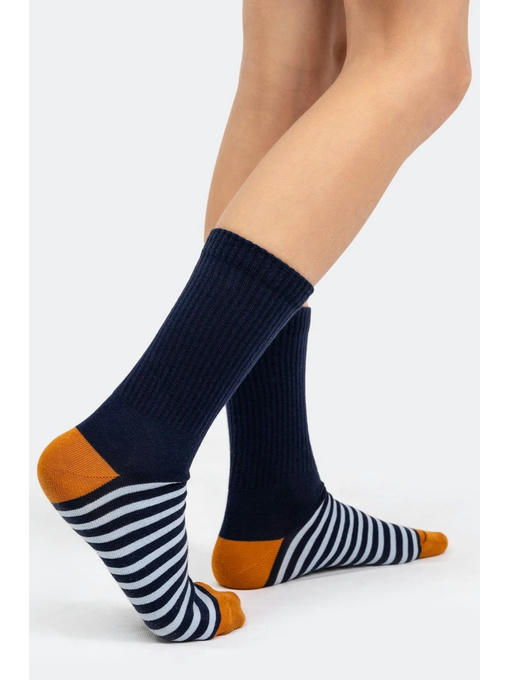Высокие детские носки в полоску мультипак (3 пары) выполнены с высоким содержанием натурального гребенного хлопка. Натуральные волокна отлично пропускают воздух и впитывают влагу, дарят ощущение комфорта в течение дня.