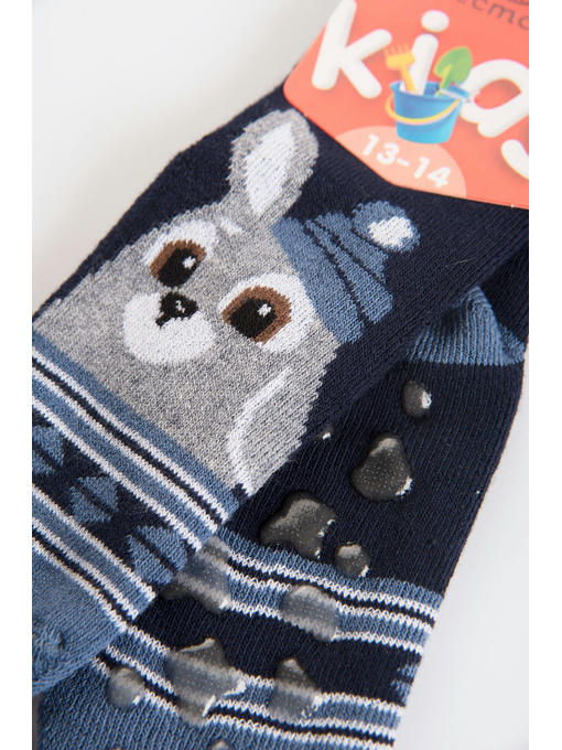 Натуральный хлопок позволяет стопе дышать, добавление гипоаллергенной синтетики защищает от деформации и увеличивает срок службы детских термо носков. Средний паголенок, мягкая резинка надежно удерживает, но не пережимает щиколотку. На стопе нанесен силикон, поэтому носки не скользят!