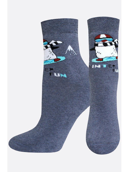 Детские махровые носочки с милым рисунком Пингвин, классическая спокойная цветовая гамма.