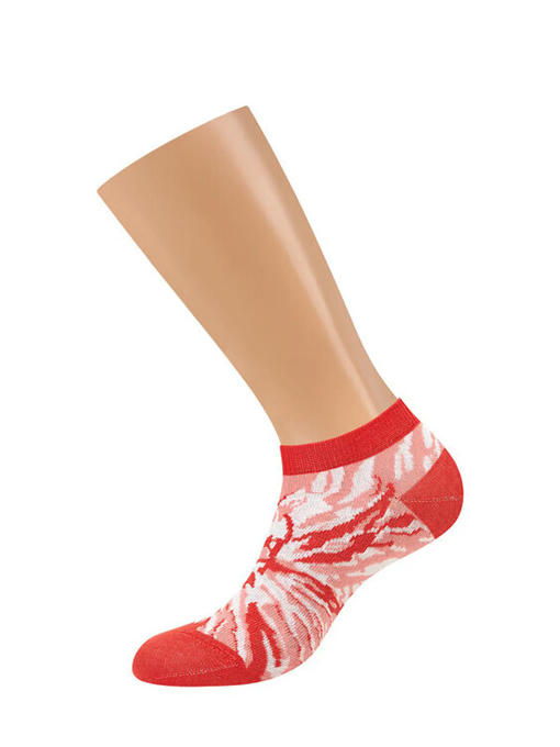 Укороченные хлопковые женские носки с комфортной резинкой и кеттельным швом. Вся модель декорирована ярким абстрактным рисунком. В составе высококачественный хлопок, который позволяет коже дышать, хорошо впитывает влагу и подходит даже для чувствительной кожи