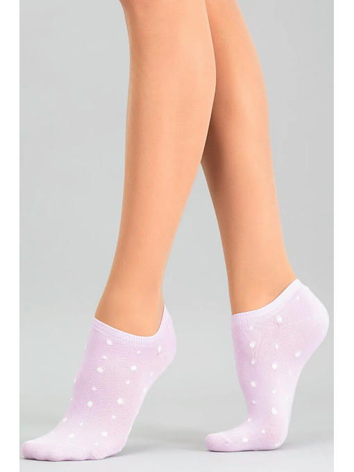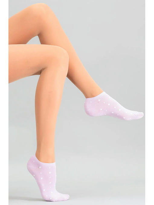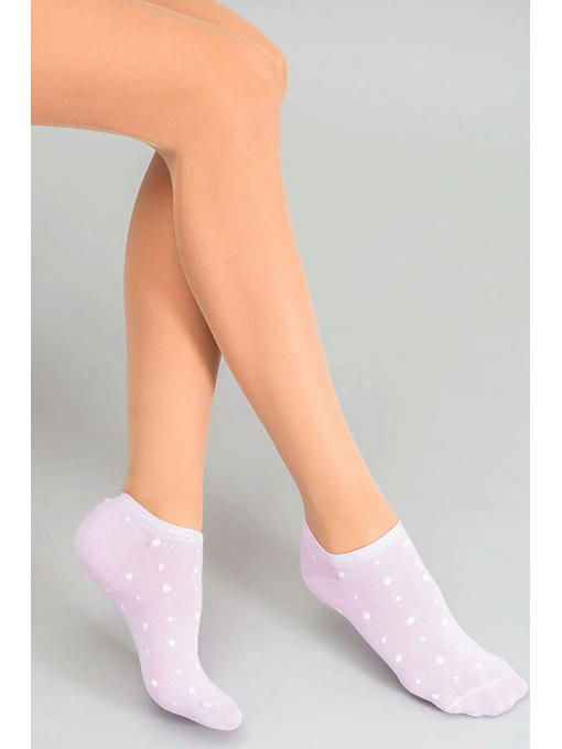Укороченные хлопковые женские носки с комфортной резинкой и кеттельным швом. Вся модель декорирована рисунком “горошек”. Носки цветные, доступна обширная гамма оттенков