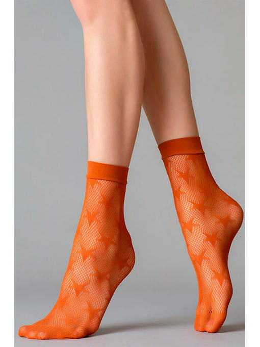 Ажурные фантазийные носки с узором “звездочки”. У модели укрепленный мысок и комфортная резинка. Носки цветные, доступна обширная гамма оттенков