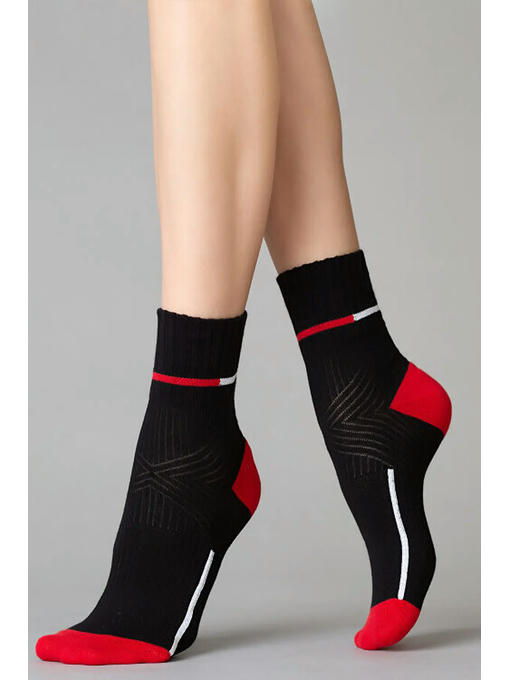 Хлопковые носки унисекс средней высоты выше щиколотки с комфортной широкой резинкой “в рубчик”, декорированной яркими полосками. Удобная резинка обеспечивает идеальное облегание, а кеттельный (плоский) шов на мыске создает дополнительный комфорт. Модель с фигурной перфорацией, которая придает ткани оптимальный воздухообмен