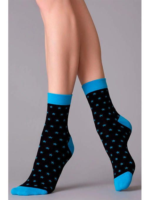 Хлопковые носки унисекс средней высоты выше щиколотки с контрастным дизайном резинки, мыска и пятки. Вся модели декорирована ярким рисунком “звездочки”. Удобная резинка обеспечивает идеальное облегание, а кеттельный (плоский) шов на мыске создает дополнительный комфорт