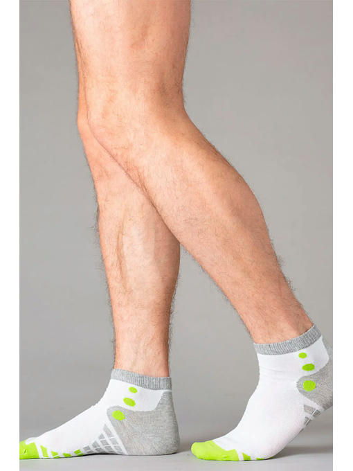 Укороченные хлопковые носки унисекс с контрастным дизайном резинки, мыска и пятки. Стопа и бока модели декорированы ярким геометрическим рисунком. Удобная резинка обеспечивает идеальное облегание, а кеттельный (плоский) шов на мыске создает дополнительный комфорт
