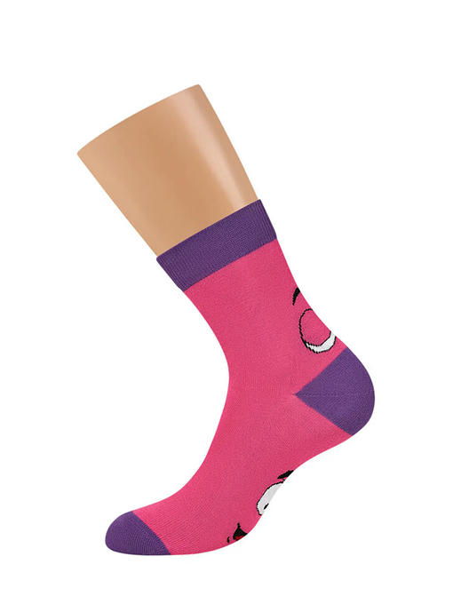 Хлопковые носки унисекс средней высоты выше щиколотки с контрастным дизайном резинки, мыска и пятки. Задняя часть и стопа модели декорированы ярким трендовым рисунком “смайлики”. Удобная резинка обеспечивает идеальное облегание, а кеттельный (плоский) шов на мыске создает дополнительный комфорт. Изделие устойчиво к истиранию и отлично сохраняет цвет