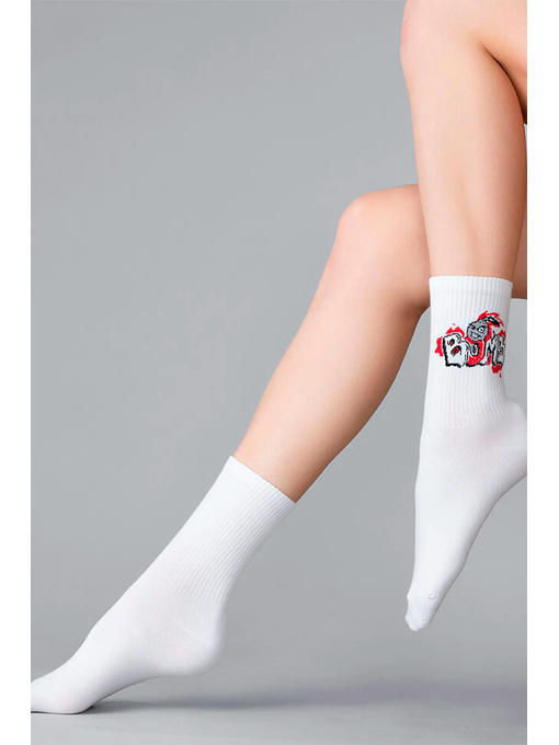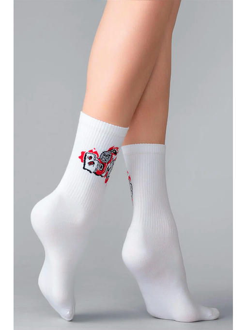 Хлопковые носки унисекс средней высоты выше щиколотки с комфортной широкой резинкой “в рубчик”, на которой размещен яркий рисунок в виде граффити. Удобная резинка обеспечивает идеальное облегание, а кеттельный (плоский) шов на мыске создает дополнительный комфорт. Граффити – одно из самых востребованных течений последних лет, которое ассоциируется с андеграундом, модой и стильной аутентичностью. Аксессуар с таким принтом подчеркивает индивидуальность и неизменно привлекает внимание