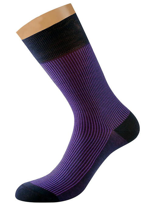 Премиальные мужские носки из мерсеризованного хлопка с ярким рисунком “полоски”. У модели усиленные мысок и пятка, кеттельный шов и широкая комфортная резинка