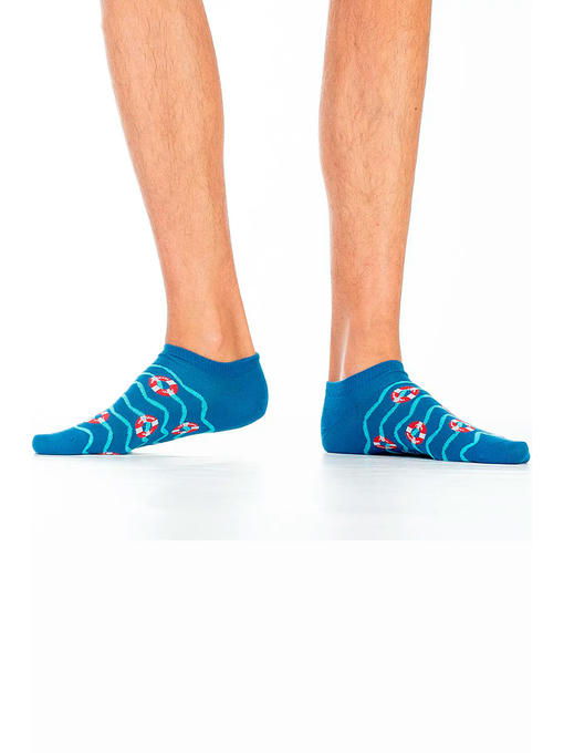 Хлопковые мужские носки с комфортной резинкой, укороченные. Вся модель декорирована ярким рисунком “волны и спасательные круги”