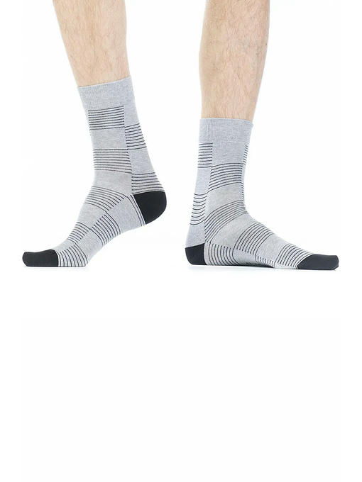 Хлопковые мужские носки с комфортной широкой резинкой. Вся модель декорирована контрастным рисунком “крупные квадраты из линий”