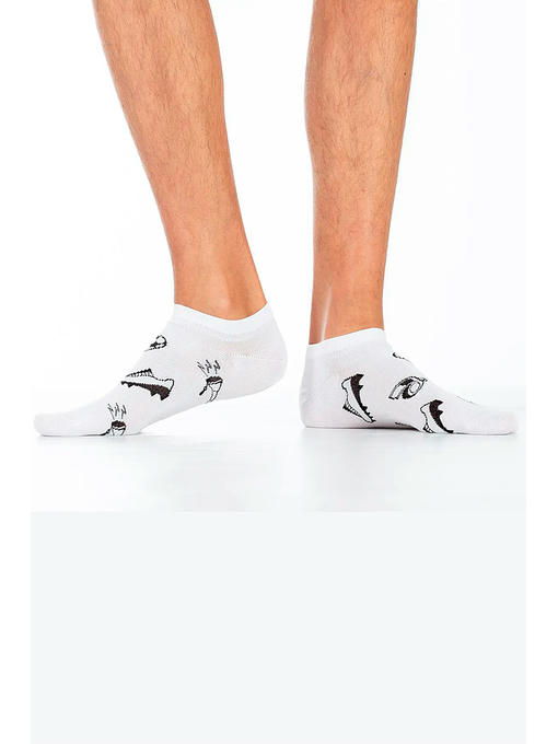 Хлопковые мужские носки с комфортной резинкой, укороченные. Вся модель декорирована контрастным ч/б рисунком “футбольные принадлежности”