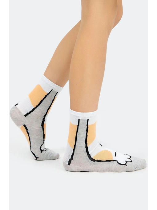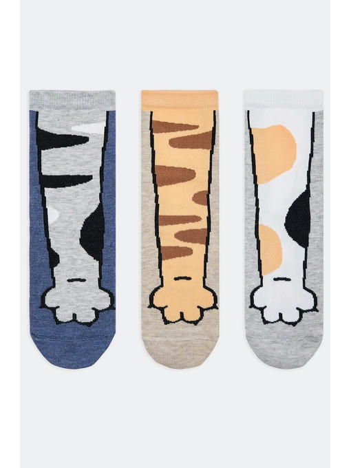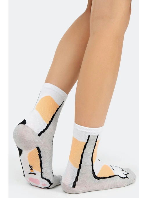 Демисезонные детские носки средней высоты с рисунками в виде кошачьих лапок. Готовый комплект стильных и красивых носочков, который может стать отличным вариантом для подарка и обязательно понравится маленьким модникам.