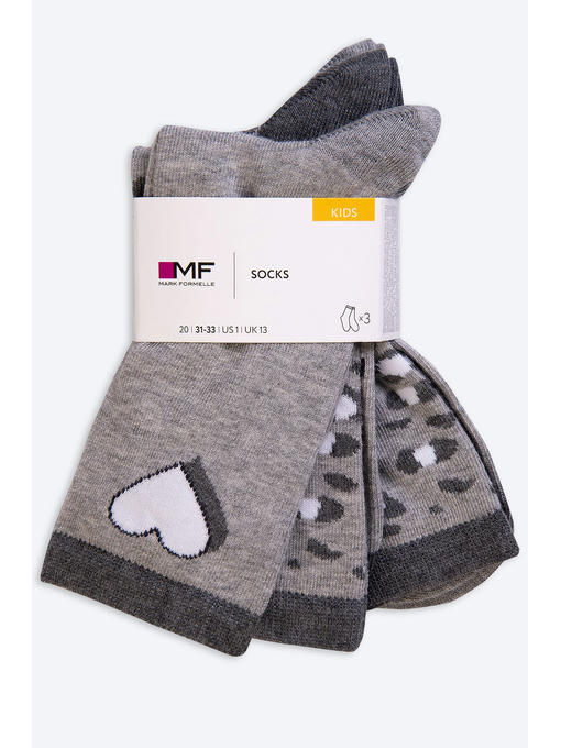 Хлопковые носки с леопардовым рисунком и рисунком сердечки для девочек. В наборе 3 пары – по 1 паре разного дизайна.
