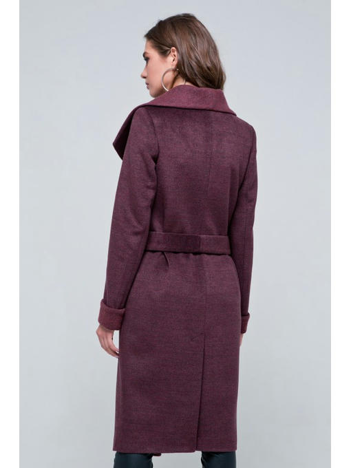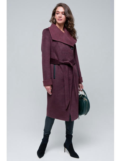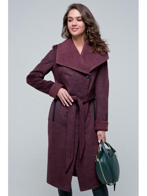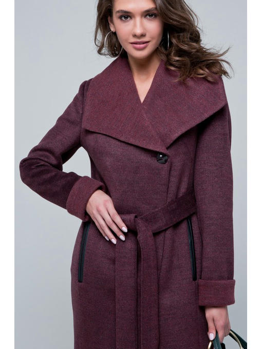 Воротник и манжеты на рукавах отличаются по цвету, потому что для них использована та же шерстяная ткань, только изнаночной стороной вверх. Вход в прорезные карманы украшен вставкой из кожи-эко.