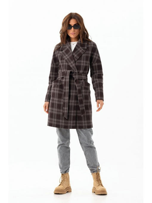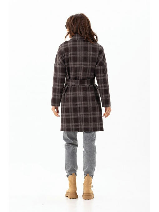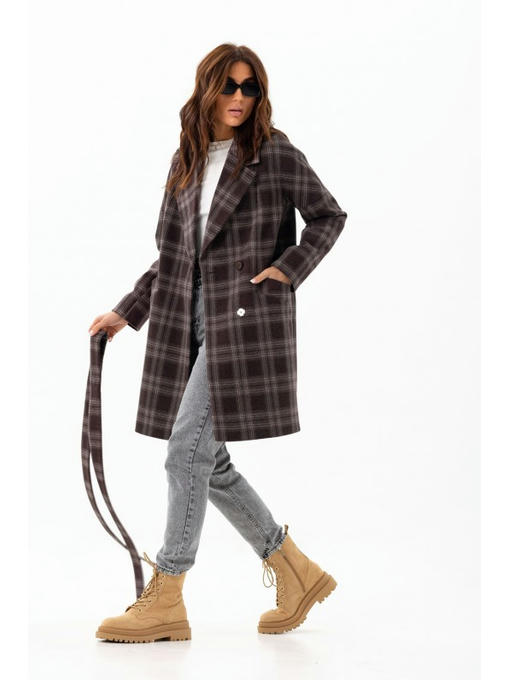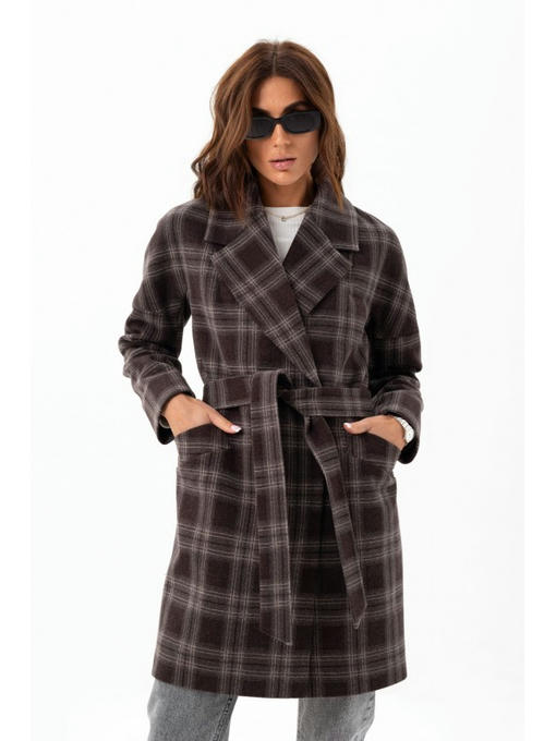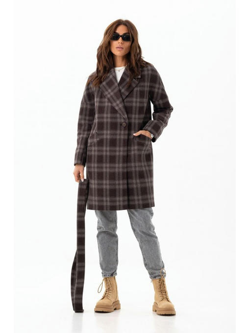Осеннее пальто сделано из шерстяной ткани с популярным узором в клетку. Средняя длина делает его универсальным. Пальто с орнаментом имеет стильный свободный фасон. Модель с отложным воротником. Цельнокроенные рукава. Карманы прорезные с листочкой. Застежка изделия – кнопки, есть внешняя пуговица. Пояс поможет превратить прямой силуэт в приталенный.