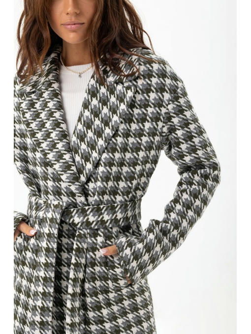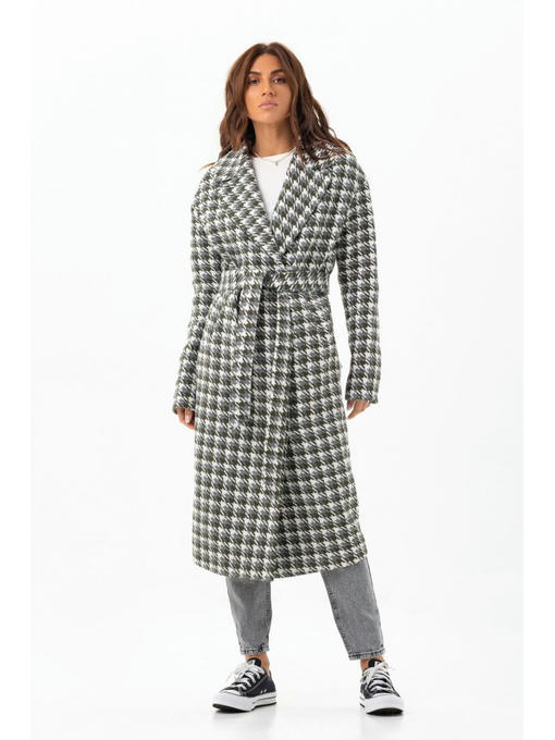 Пальто в лапку серо-зеленое