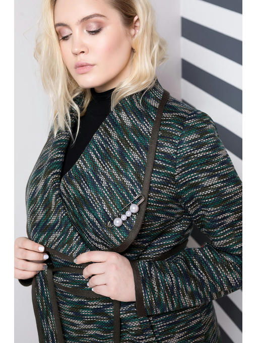 Кардиган больших размеров до 64-го, из двусторонней ткани, без подкладки, застегивается на пришивную кнопку. Украшает воротник декоративная брошь что придает элегантности образу. Все срезы изделия обработаны трикотажной бейкой в тон ткани. Идеально подойдет к обуви как на низком ходу так и на каблуке.