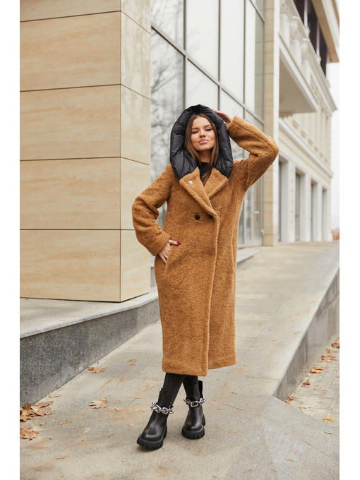 Зимняя шуба тедди с капюшоном классического кроя из высококачественного эко— меха.