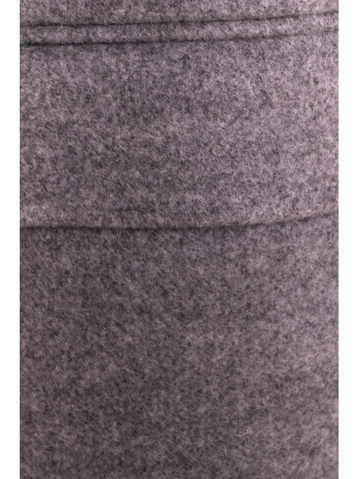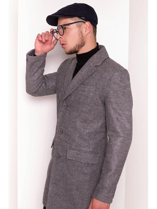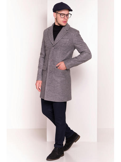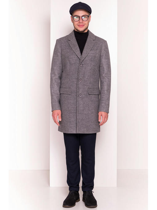 Однобортное прямое пальто. Застегивается на пуговицы. Манжеты рукавов так же с застежками. На спинке – шлица. Воротник отложной. Лацканы прямые. Горизонтальные прорезные карманы с декоративной тканевой накладкой. Нагрудный карман расположен по левой стороне.