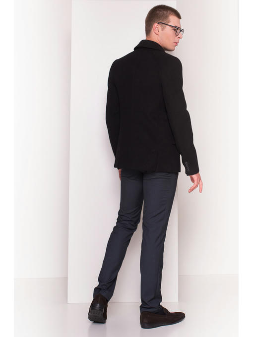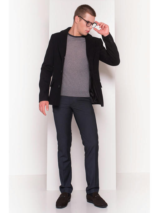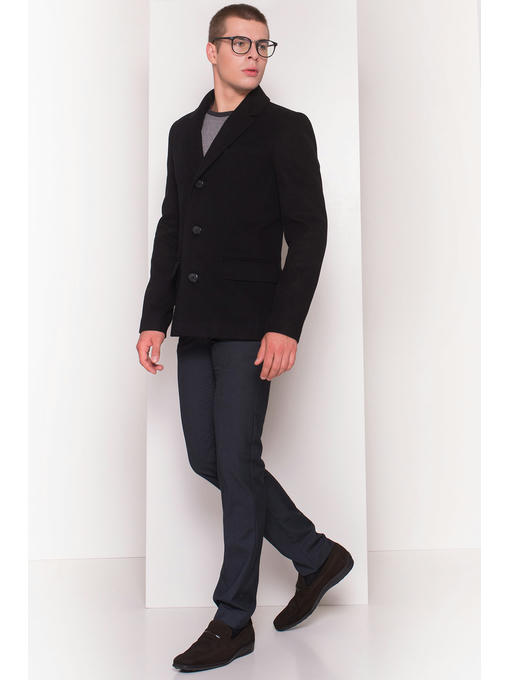 Короткое мужское пальто прямого кроя. Однобортное, застегивается на пуговицы. На спинке – две шлицы. Манжеты рукавов застегиваются на пуговицы. Воротник отложной, с прямыми лацканами.